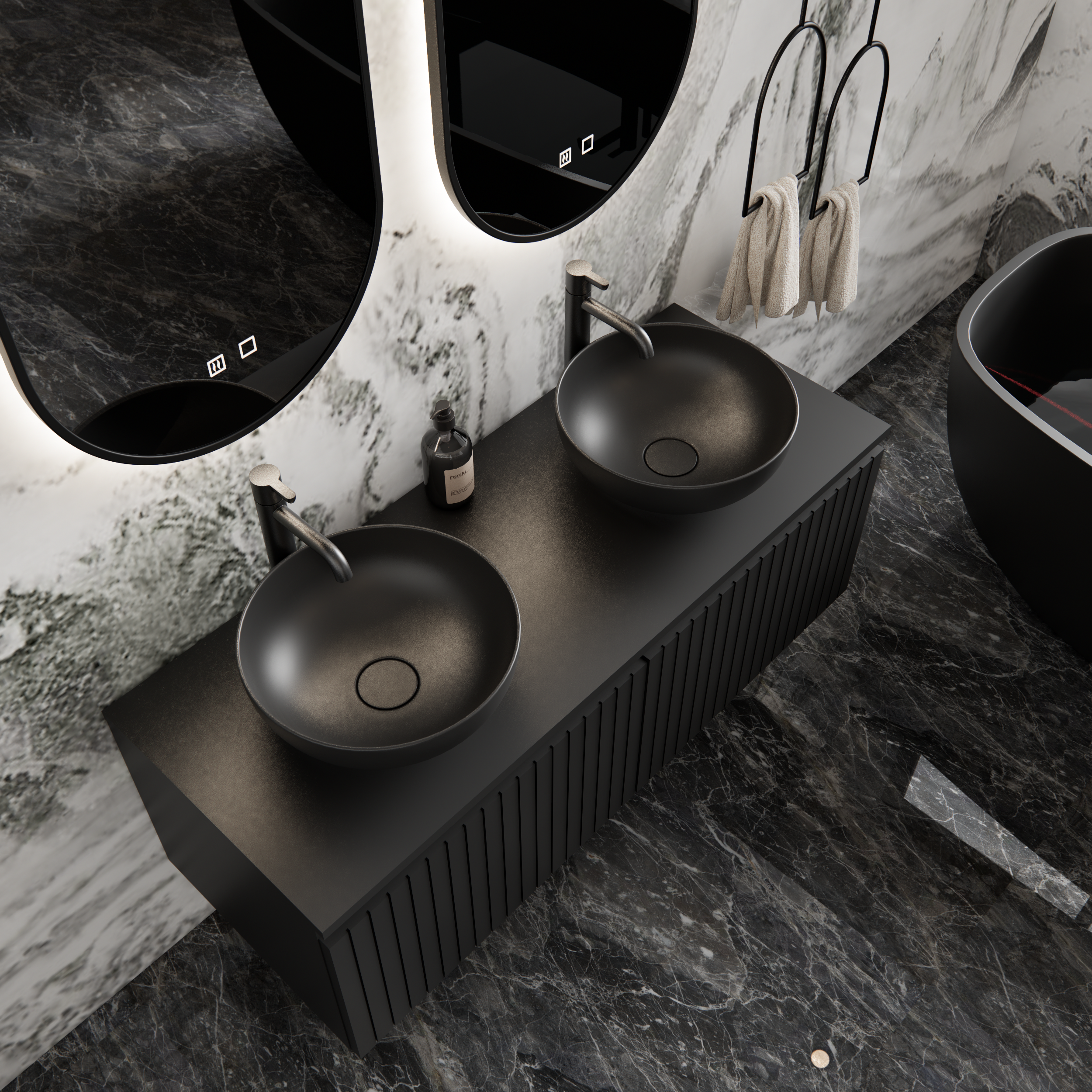 Ribbelfront als Visueel Statement: Het verticale ribbelpatroon op het front van de Arges dient niet alleen als een visueel aantrekkelijk kenmerk, maar ook als een krachtig statement van verfijnd design. Deze subtiele, gelakte motieven creëren een unieke en luxueuze sfeer in uw badkamer, waardoor deze zich onderscheidt van andere.