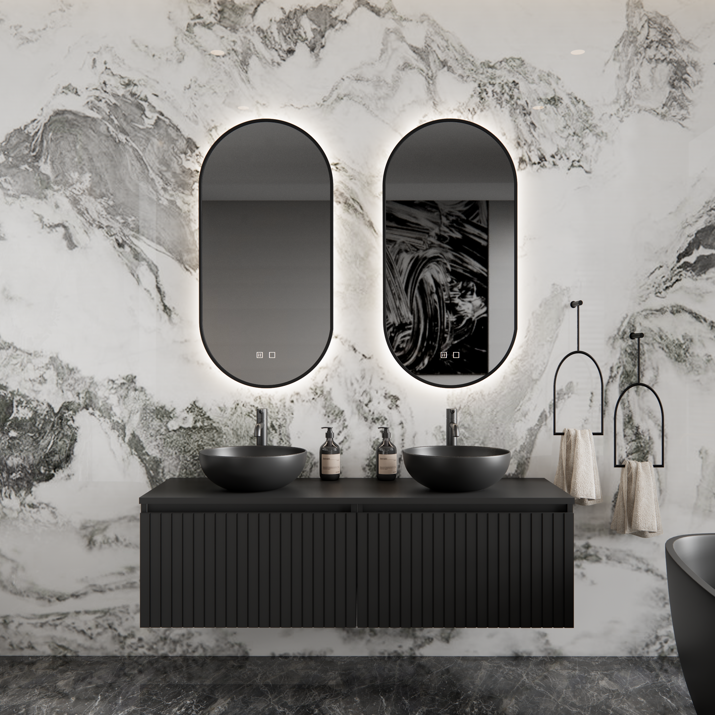Ontdek de tijdloze luxe en veelzijdigheid van het Gliss Design Arges Badkamermeubel, en transformeer uw badruimte tot een oase van comfort en elegantie.