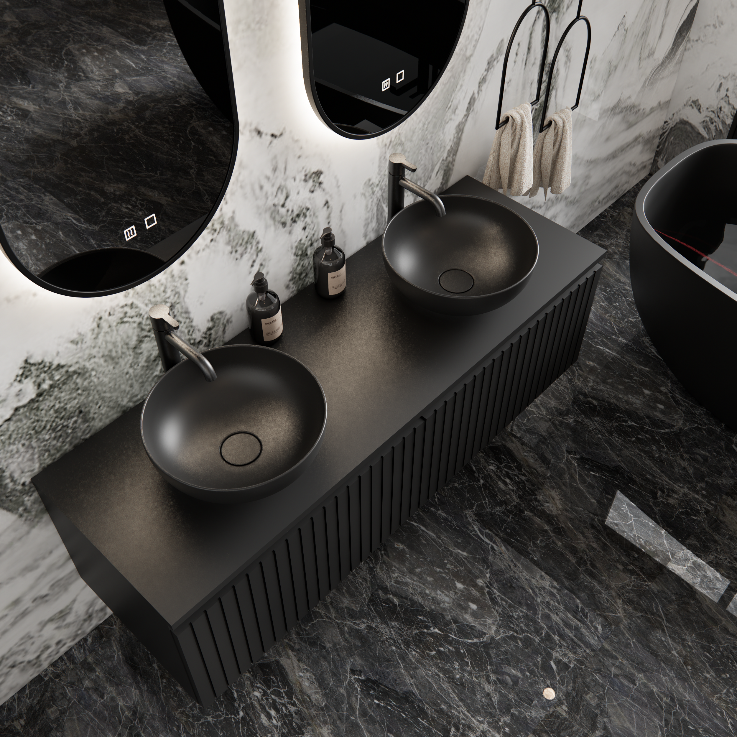 Ribbelfront als Visueel Statement: Het verticale ribbelpatroon op het front van de Arges dient niet alleen als een visueel aantrekkelijk kenmerk, maar ook als een krachtig statement van verfijnd design. Deze subtiele, gelakte motieven creëren een unieke en luxueuze sfeer in uw badkamer, waardoor deze zich onderscheidt van andere.