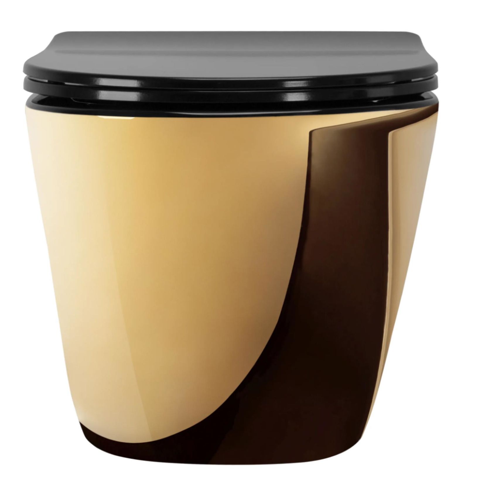 Modern design hangend toilet in trendy geborsteld goud vanwege kwaliteitsmerk REA.