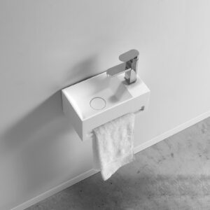 De Sanisolid Simson wastafel mat wit is beschikbaar in de kleur Mat Wit. Deze compacte wastafel past zelfs in de kleinste ruimtes, ook in uw toiletruimte. De wastafel is 355 mm breed en 200 mm diep. De witte kleur is stijlvol en tijdloos. De matte finish geeft de wastafel een moderne uitstraling. De afvoer is in dezelfde mat witte kleur wat het geheel mooi afwerkt. In combinatie met de mat zwarte Mikii fonteinkraan heeft u een mooie design fontein waarmee u uw toiletruimte omtovert tot een modern ingerichte ruimte. Dankzij de inkeping aan de onderzijde van de wastafel kunt u makkelijk uw handdoek kwijt. Dit detail is praktisch en stijlvol. Heeft u interesse in een ander formaat in dezelfde stijl? Dan kunt u kijken naar de volgende modellen: